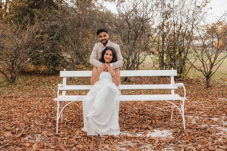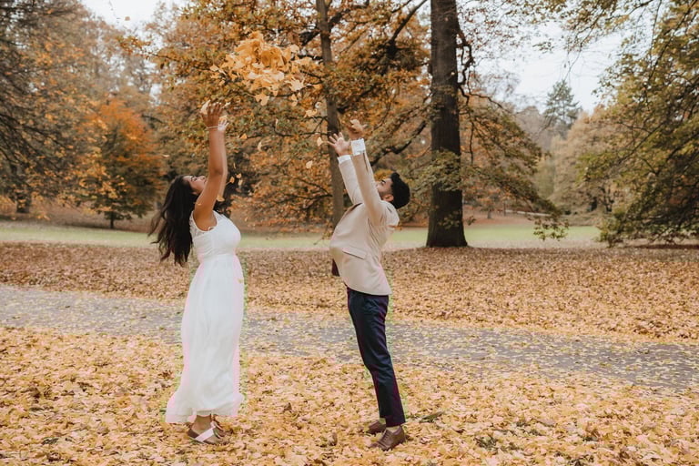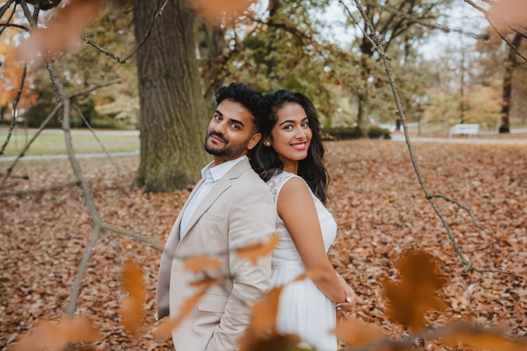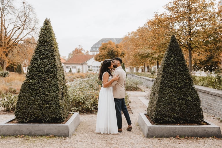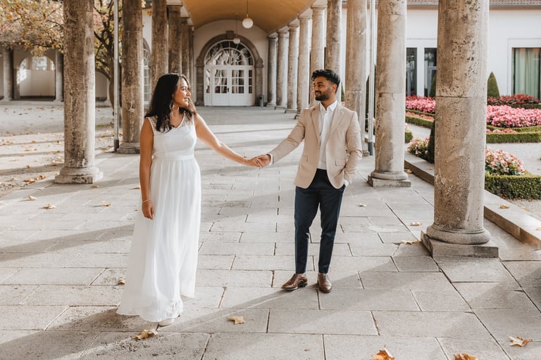 Im Rahmen des After-Wedding-Shootings hatten wir die Freude, Ratnal und Krateya zu begleiten. Sie entschieden sich für ein herbstliches Shooting im malerischen Bad Nauheim, das mit seiner historischen Architektur, den eleganten Jugendstilgebäuden und den wunderschönen Parkanlagen die ideale Kulisse für unvergessliche Hochzeitsfotos bietet. Vom prächtigen Kurpark bis zu den romantischen Ecken der Stadt – Bad Nauheim schafft ein einzigartiges Ambiente, in dem Paare ihre Liebe in atemberaubenden Bildern festhalten können.