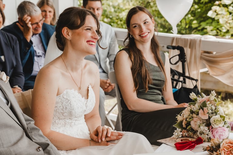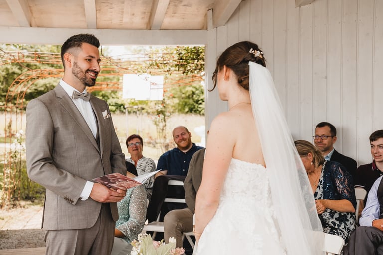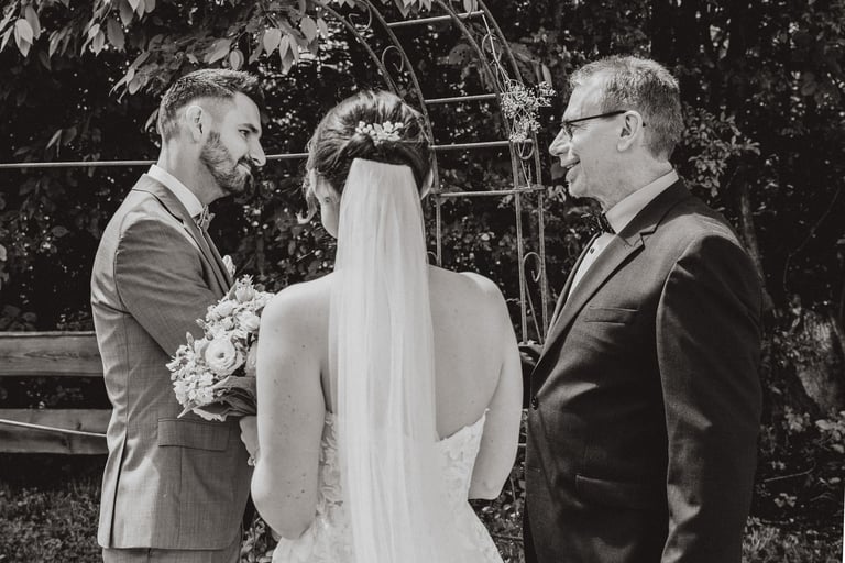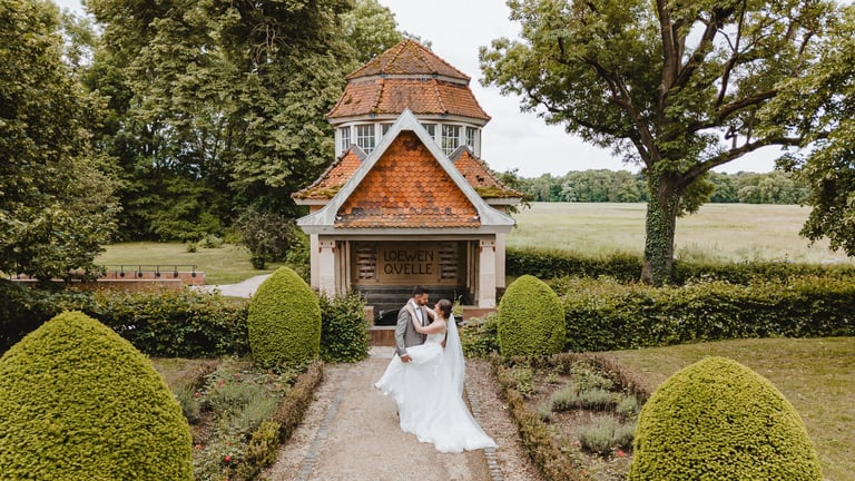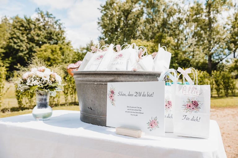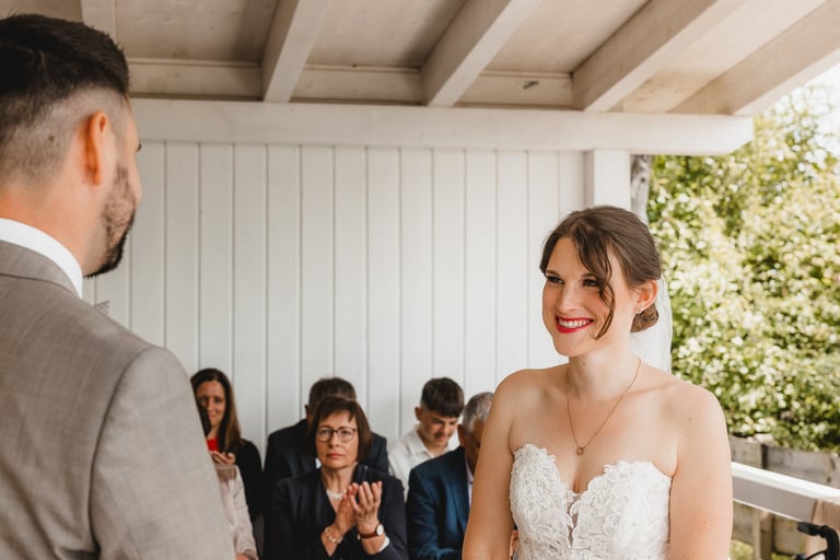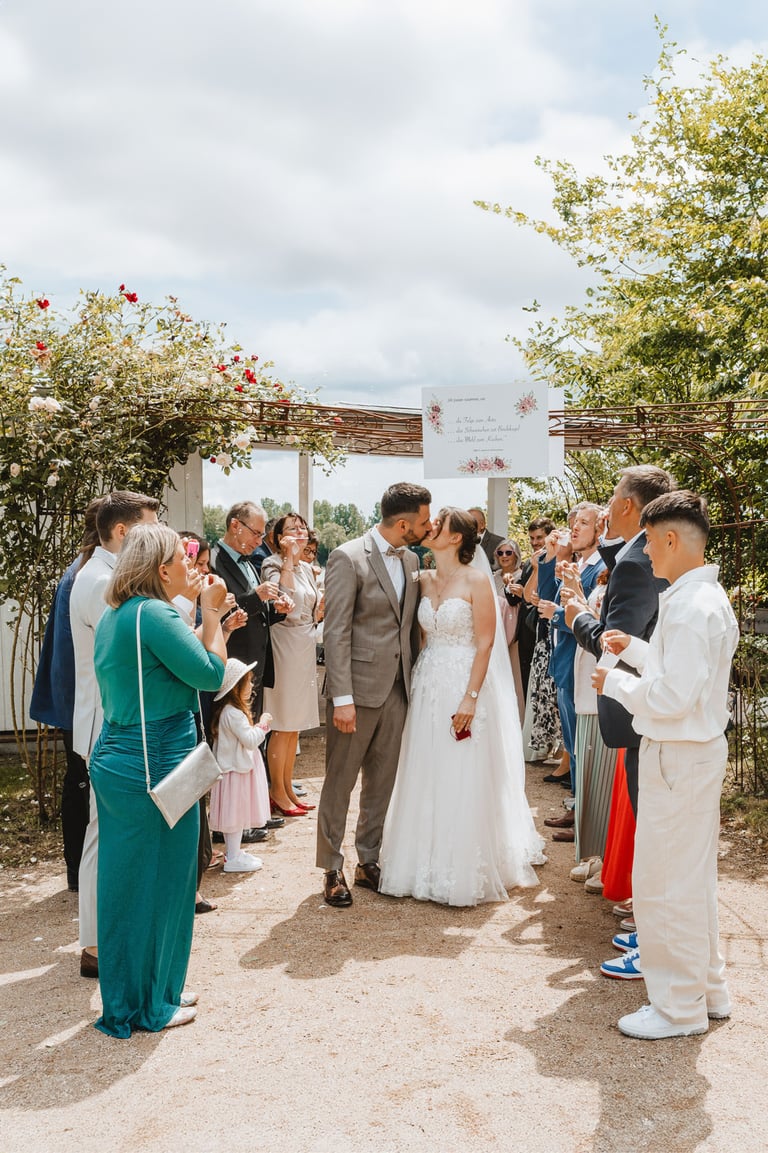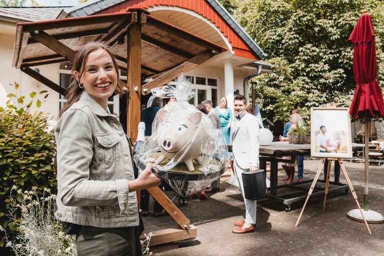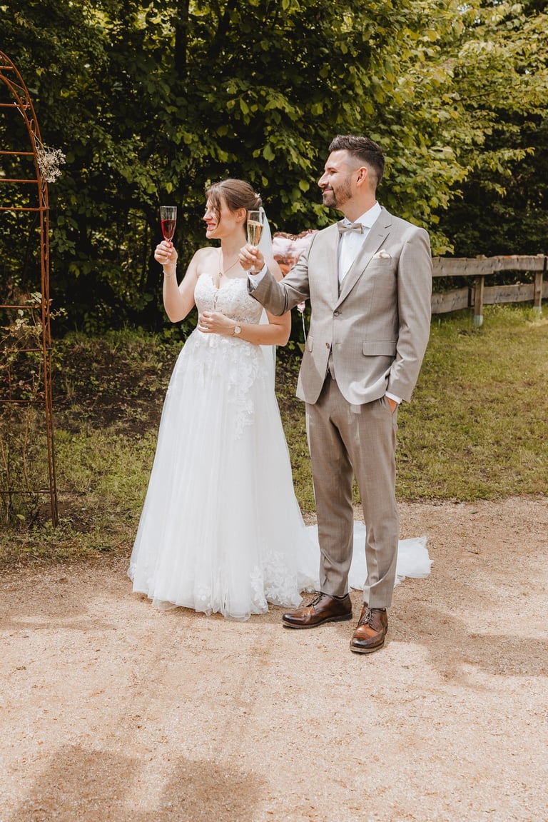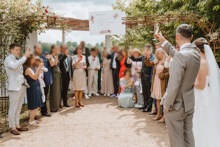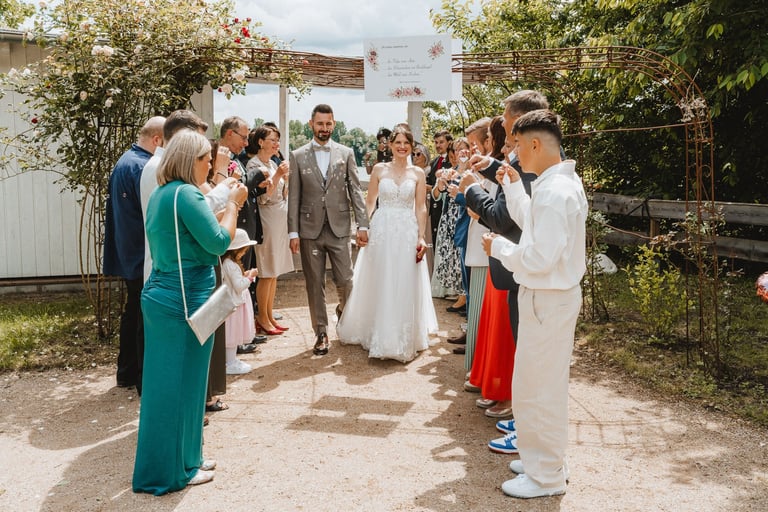 Am Wölfersheimer See, inmitten der idyllischen Wetterauer Natur, gaben sich Lena und Flo das Ja-Wort. Seit 2018 bietet dieser Ort eine ganz besondere Möglichkeit, den Bund fürs Leben zu schließen – direkt am Seeufer, umgeben von einer malerischen Landschaft. Mit viel Liebe und Hingabe haben die beiden das gesamte Gelände für ihre Trauung geschmückt. Die persönliche Note der Dekoration trug zur einzigartigen Atmosphäre bei und verlieh der Hochzeit eine ganz besondere Magie. Während der Zeremonie trugen sie sich ihre eigenen, berührenden Worte vor – ein emotionaler Moment, bei dem kein Auge trocken blieb. Beim anschließenden Sektempfang mit Fingerfood genossen die Gäste die herzliche Stimmung und die wunderschöne Umgebung. Die Feier ging im Anschluss weiter ins Brunnenwärterhaus nach Bad Nauheim – eine einzigartige Location, die mit ihrem charmanten Ambiente und erstklassigem Service zu einer unvergesslichen Feier einlud. Das Brunnenwärterhaus ist bekannt für seine besondere Atmosphäre und bietet Platz für stilvolle Hochzeitsfeiern mit einer fantastischen Auswahl an kulinarischen Köstlichkeiten.