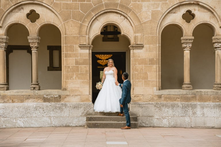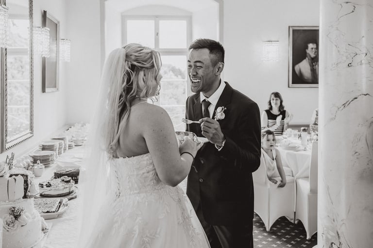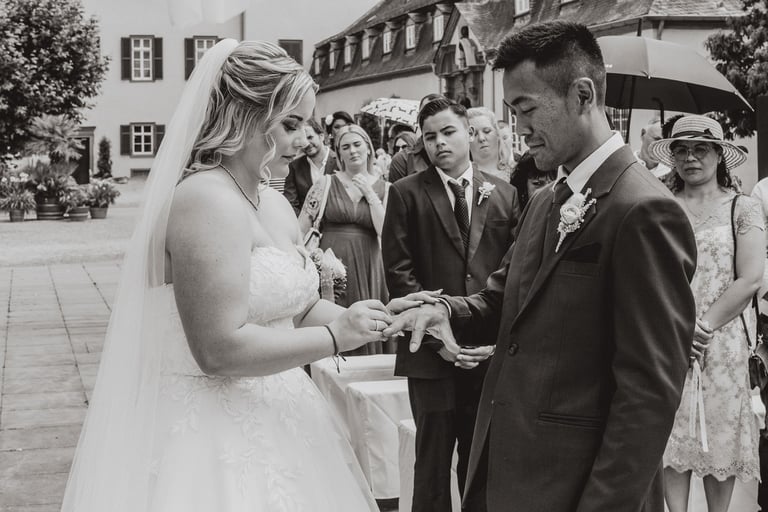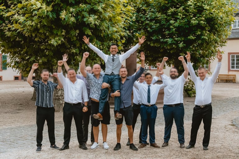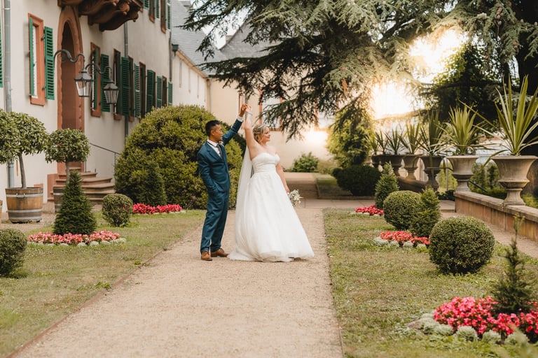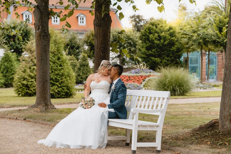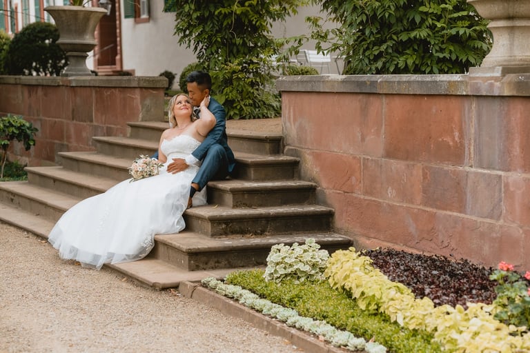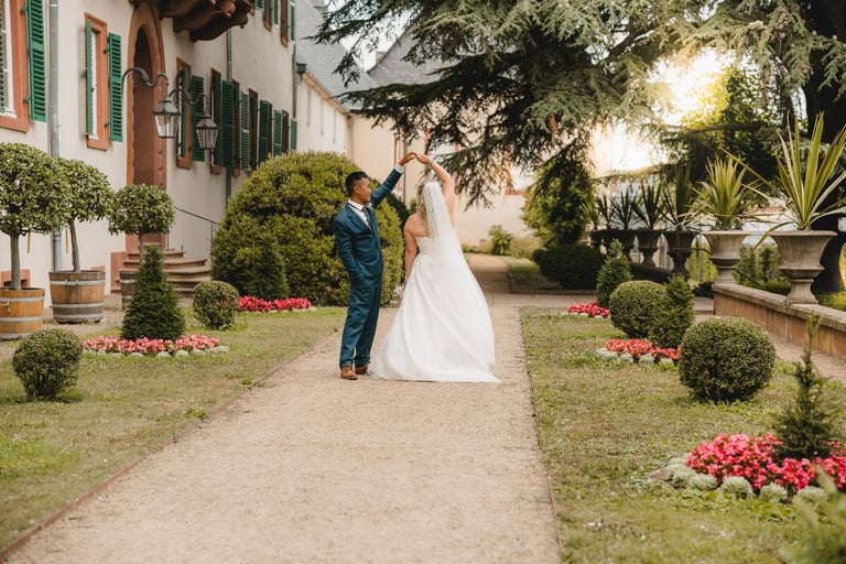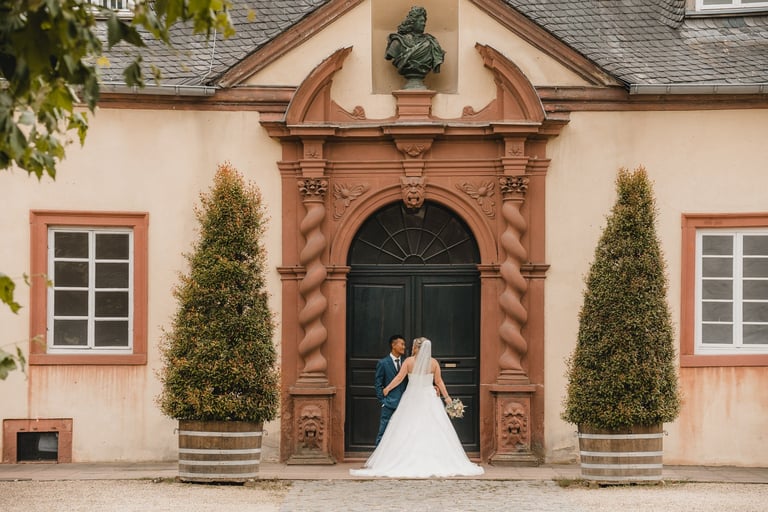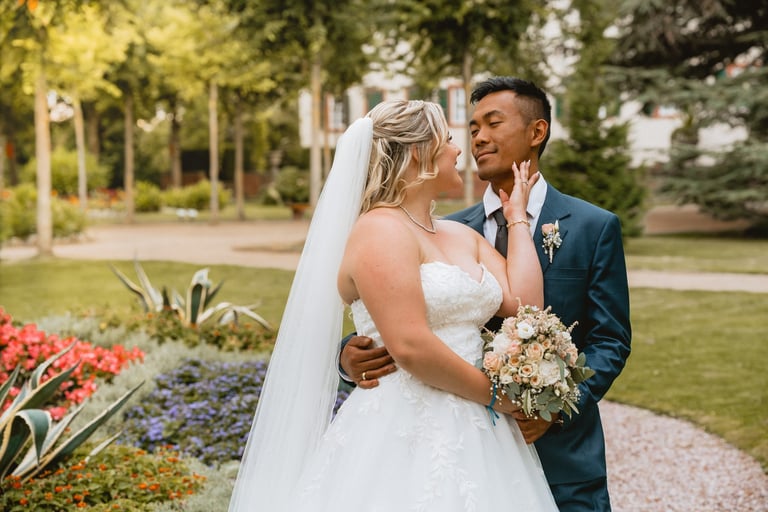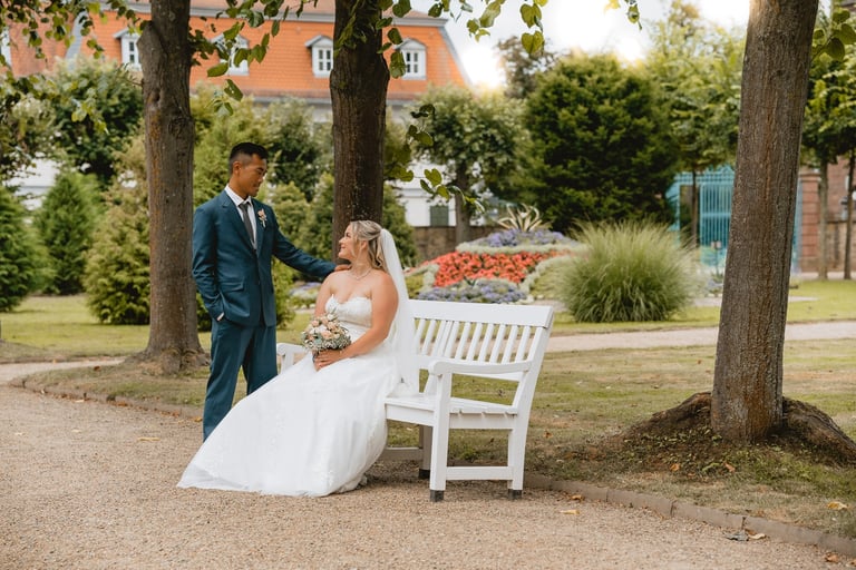 Das Brautpaarshooting konnten wir im direkt angrenzenden Schlosspark durchführen. Dort gab es unzählige stimmungsvolle Plätze für natürliche und wunderschöne Aufnahmen. Gemeinsam mit Yvonne, Yutthana und ihren Gästen durften wir einen Tag voller Herzlichkeit, Lachen und Liebe erleben – ein unvergesslicher Tag, den wir noch lange in Erinnerung behalten werden.