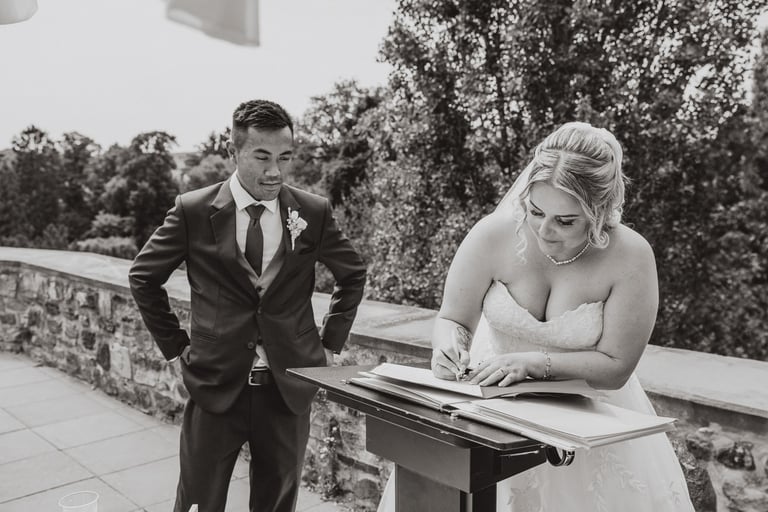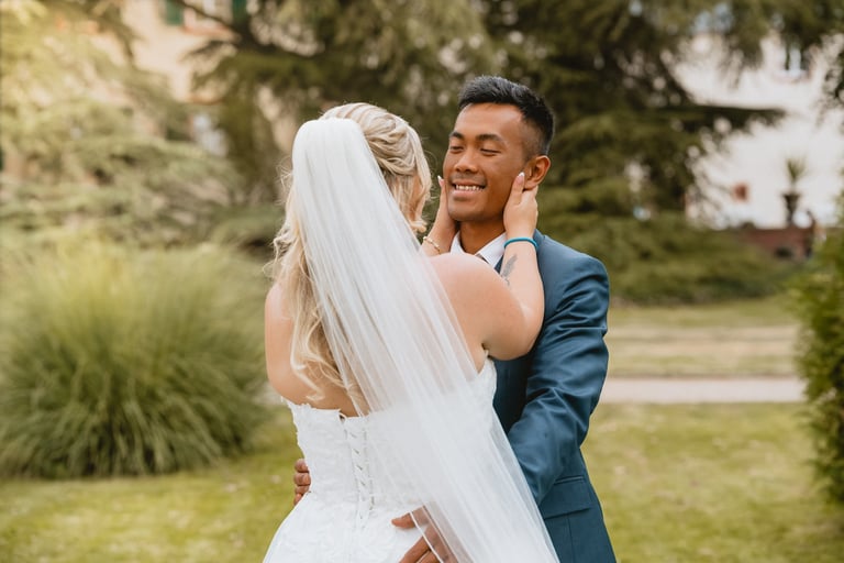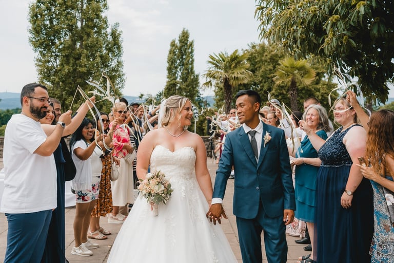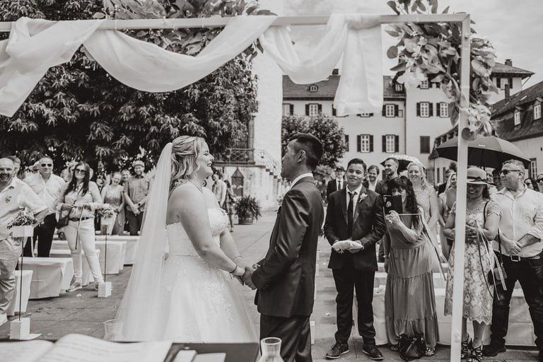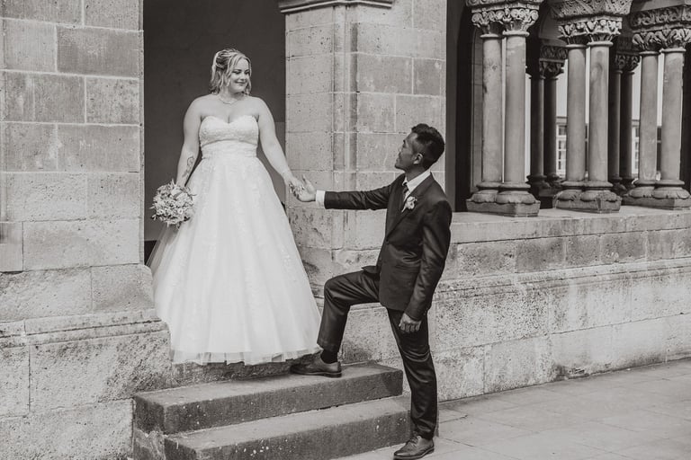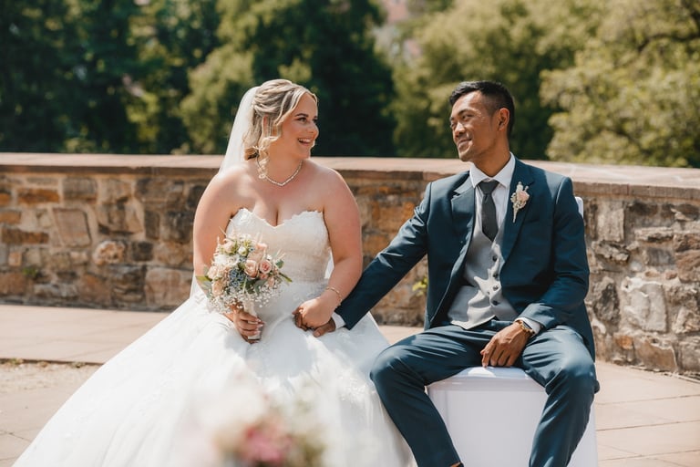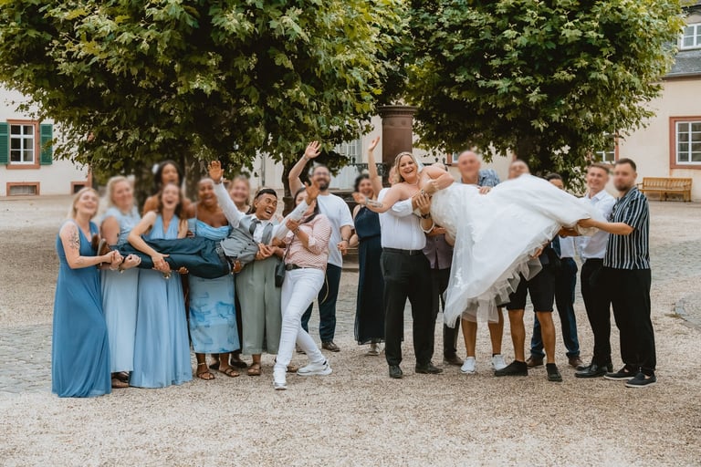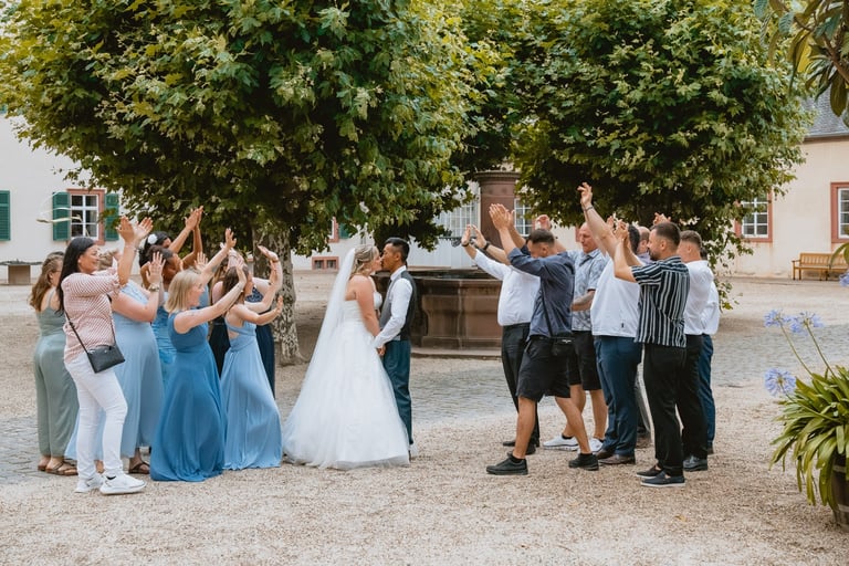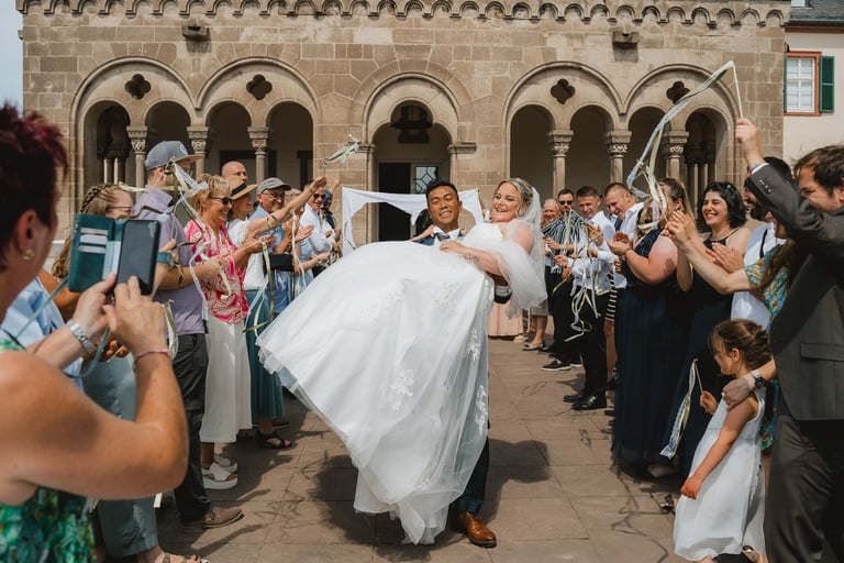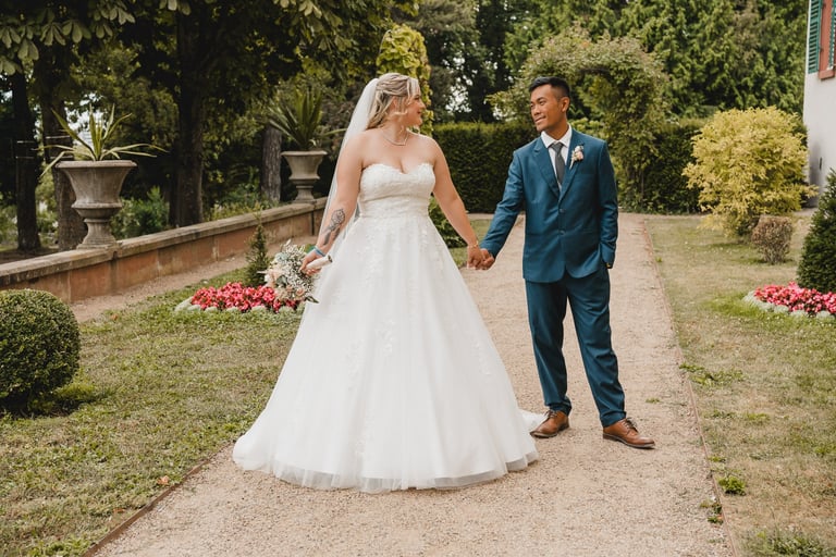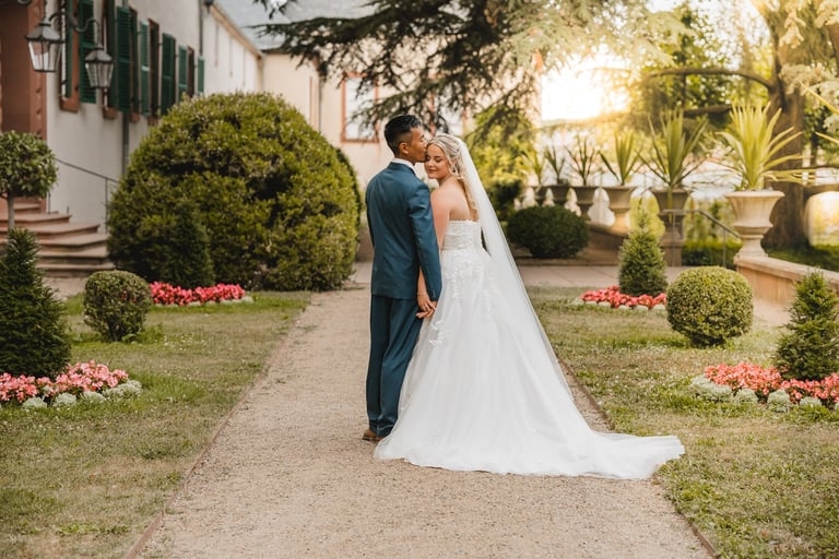 Das Brautpaarshooting konnten wir im direkt angrenzenden Schlosspark durchführen. Dort gab es unzählige stimmungsvolle Plätze für natürliche und wunderschöne Aufnahmen. Gemeinsam mit Yvonne, Yutthana und ihren Gästen durften wir einen Tag voller Herzlichkeit, Lachen und Liebe erleben – ein unvergesslicher Tag, den wir noch lange in Erinnerung behalten werden.