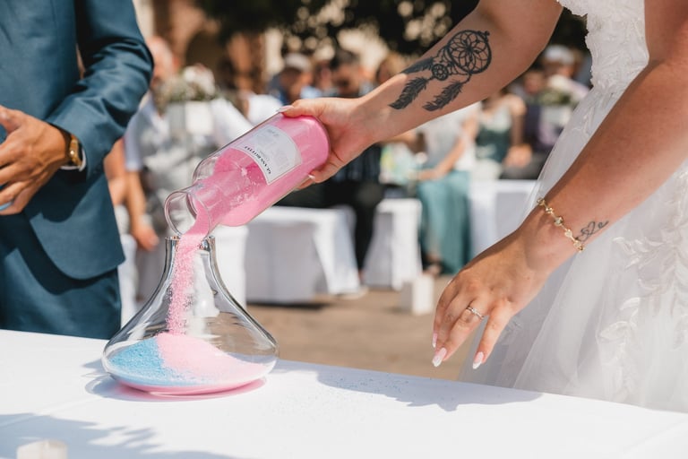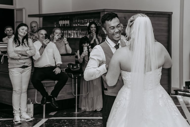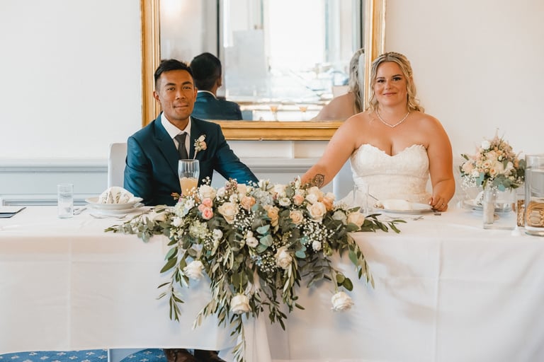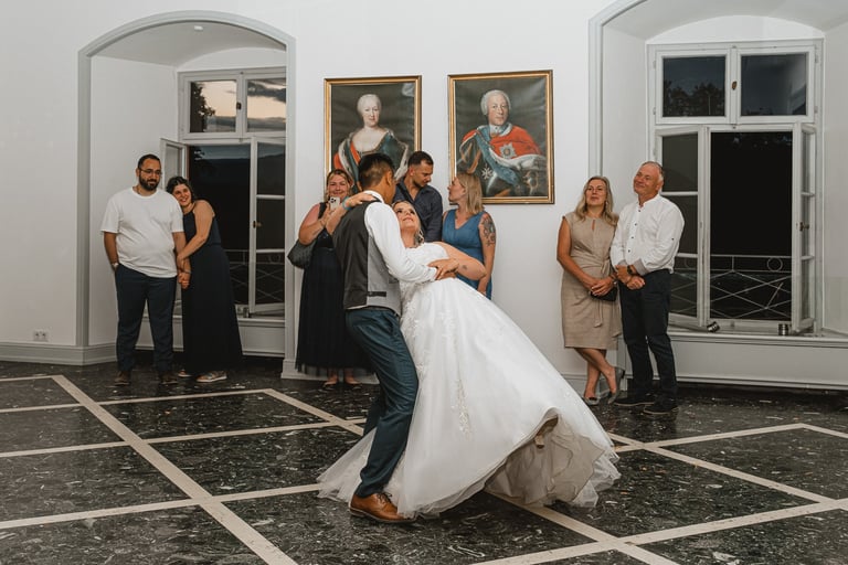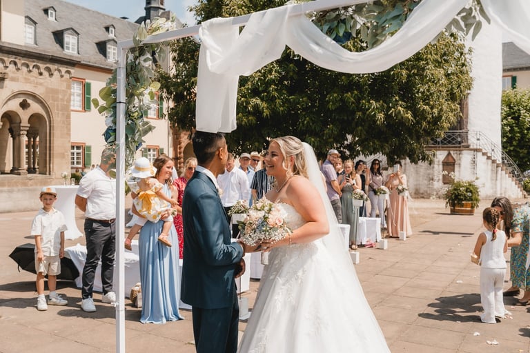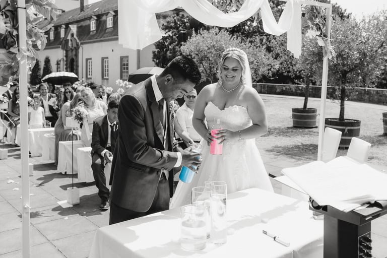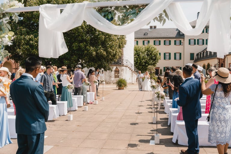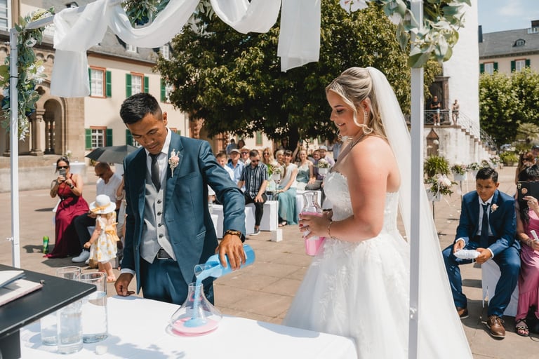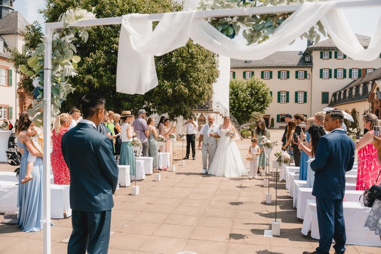 Für ihre Feier haben die beiden den eleganten Weißen Saal und für die freie Trauung die wunderschöne Schlossterrasse gewählt. Alles war bis ins kleinste Detail liebevoll geplant und dekoriert – man spürte in jedem Moment, wie viel Herzblut Yvonne und Yutthana in diesen besonderen Tag gesteckt haben.