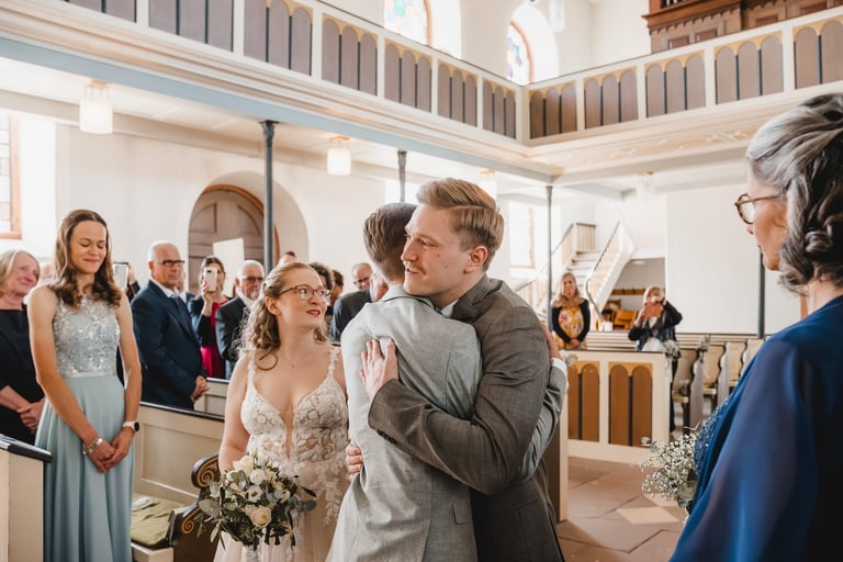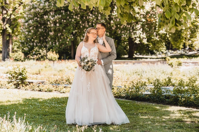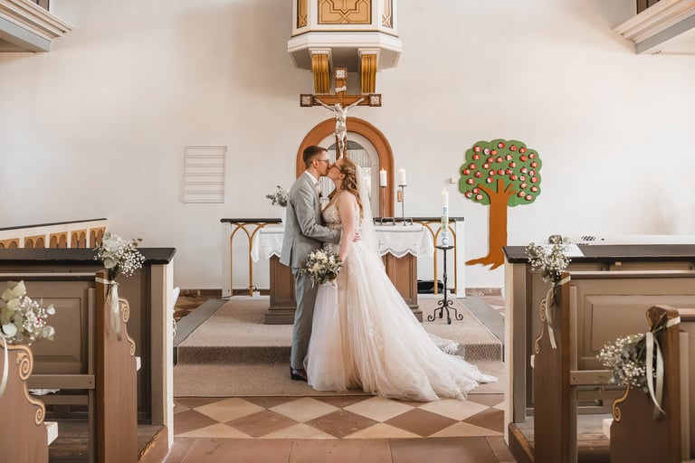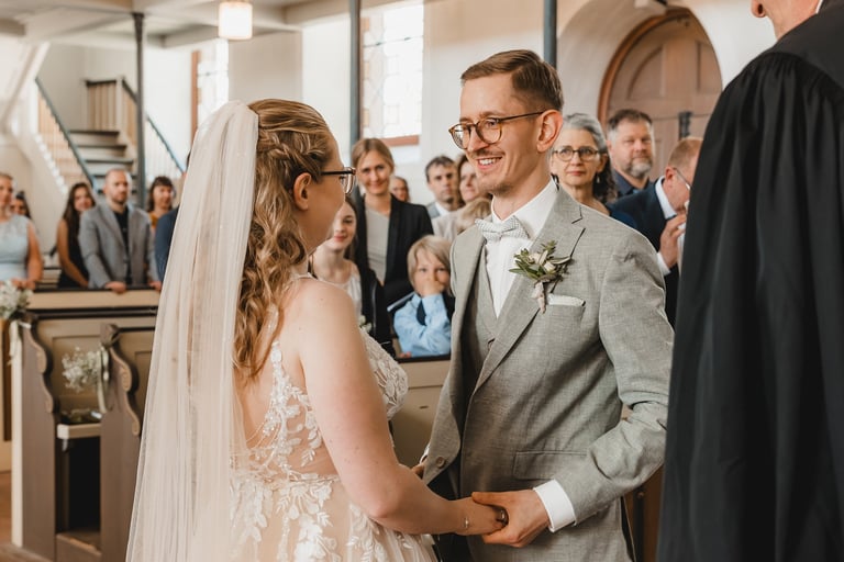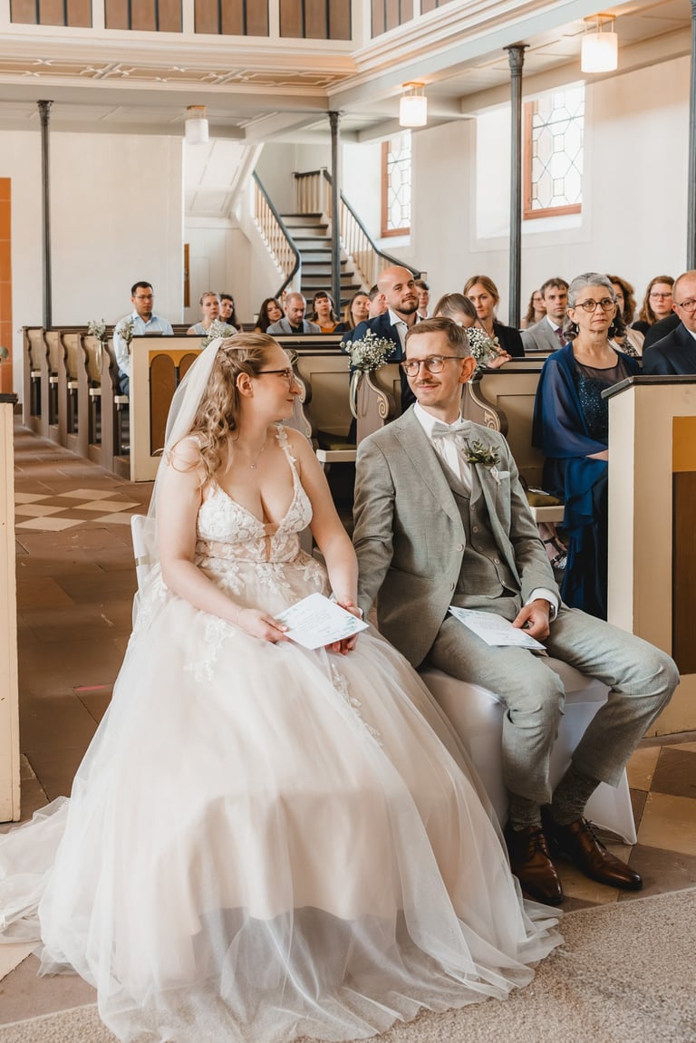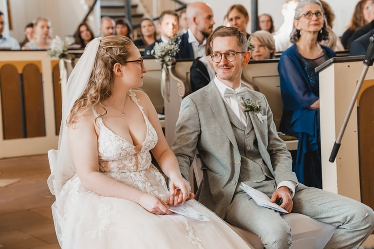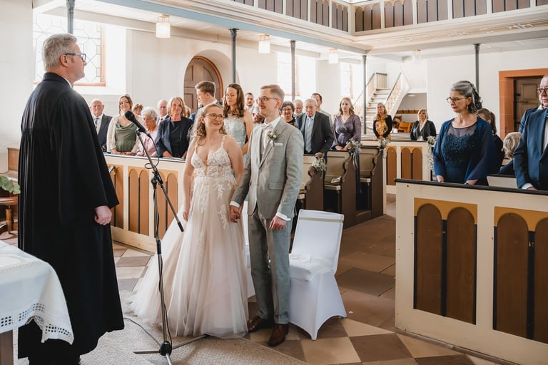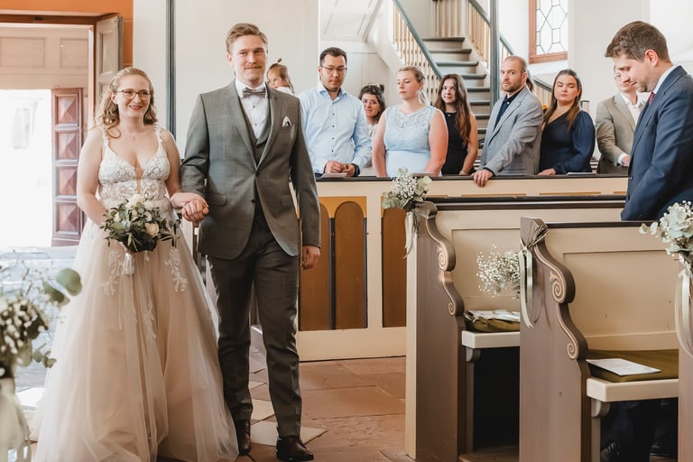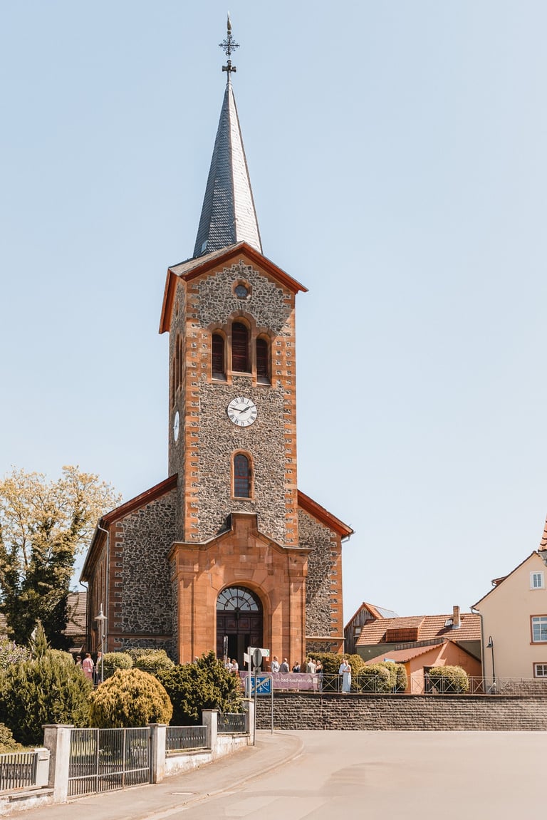 An einem herrlichen Frühsommertag gaben sich Larissa & Tobias während ihrer kirchlichen Trauung in Bad Nauheim das Ja-Wort. Das Paarshooting und den First Look durften wir zuvor bereits in der wunderschönen Trinkkuranlage und dem angrenzenden Rosengarten festhalten. So waren die für das Brautpaar so wichtigen Aufnahmen bereits im Kasten, und Larissa & Tobias konnten während der Trauung und beim anschließenden Feiern ihre Emotionen ganz frei genießen.