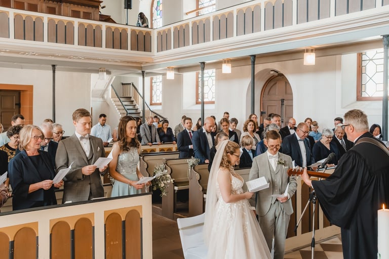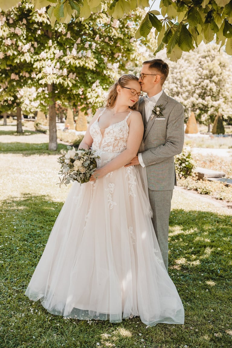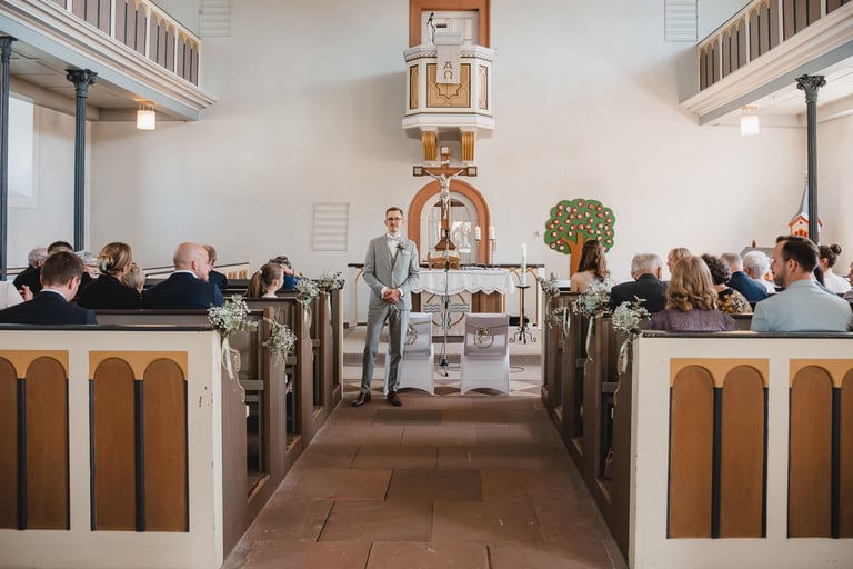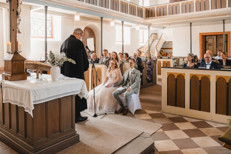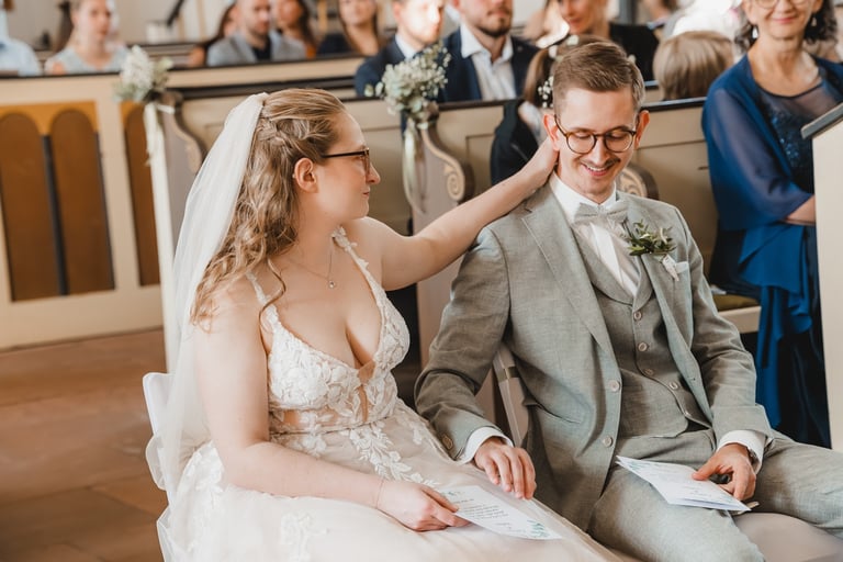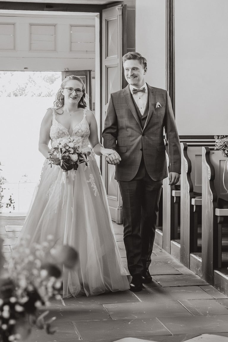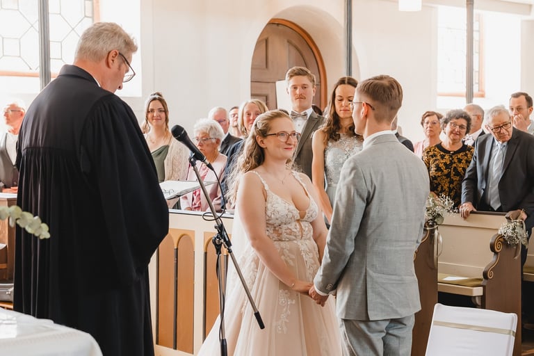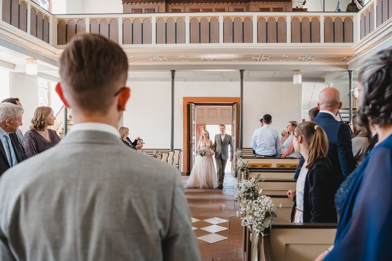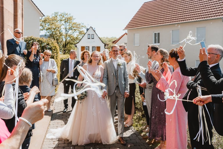 An einem herrlichen Frühsommertag gaben sich Larissa & Tobias während ihrer kirchlichen Trauung in Bad Nauheim das Ja-Wort. Das Paarshooting und den First Look durften wir zuvor bereits in der wunderschönen Trinkkuranlage und dem angrenzenden Rosengarten festhalten. So waren die für das Brautpaar so wichtigen Aufnahmen bereits im Kasten, und Larissa & Tobias konnten während der Trauung und beim anschließenden Feiern ihre Emotionen ganz frei genießen.