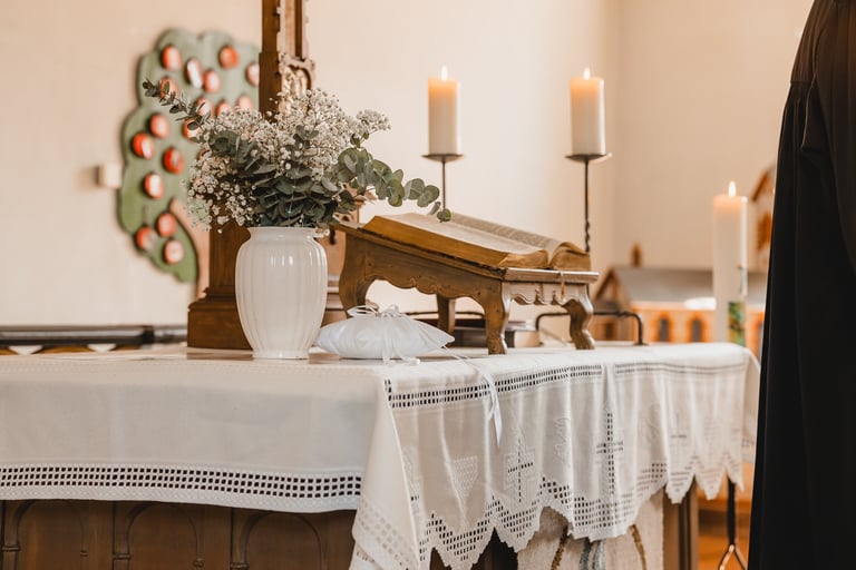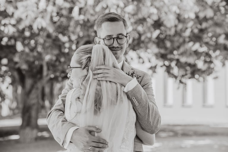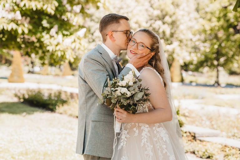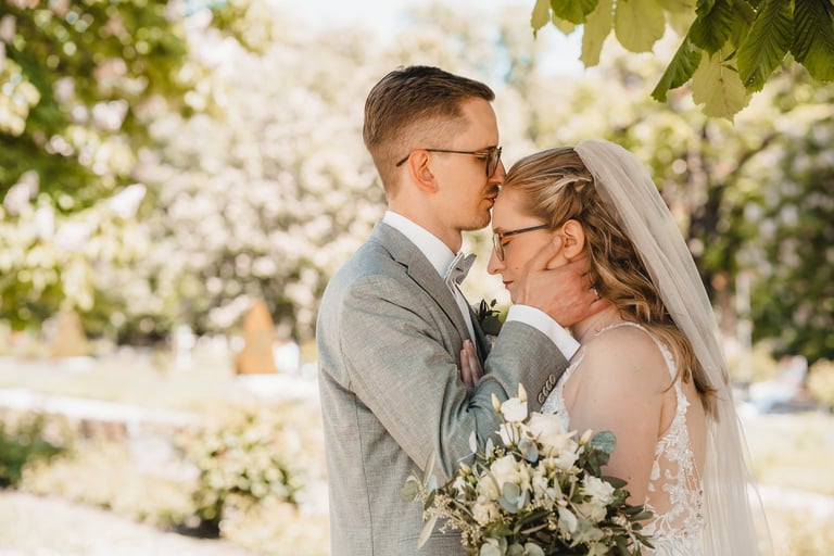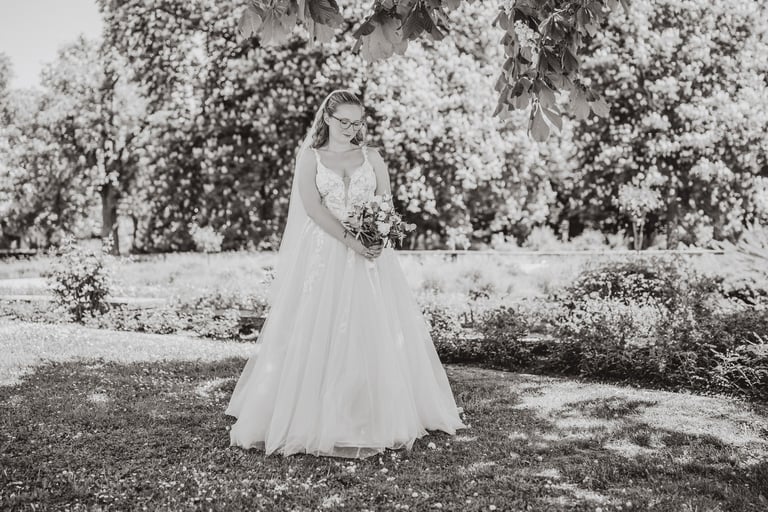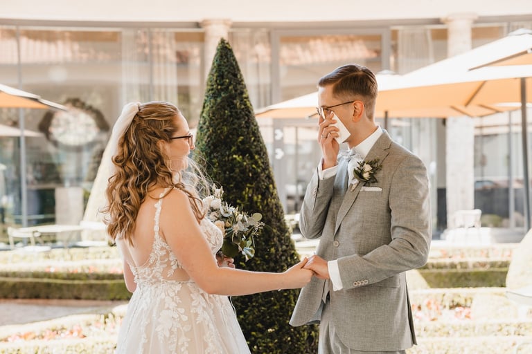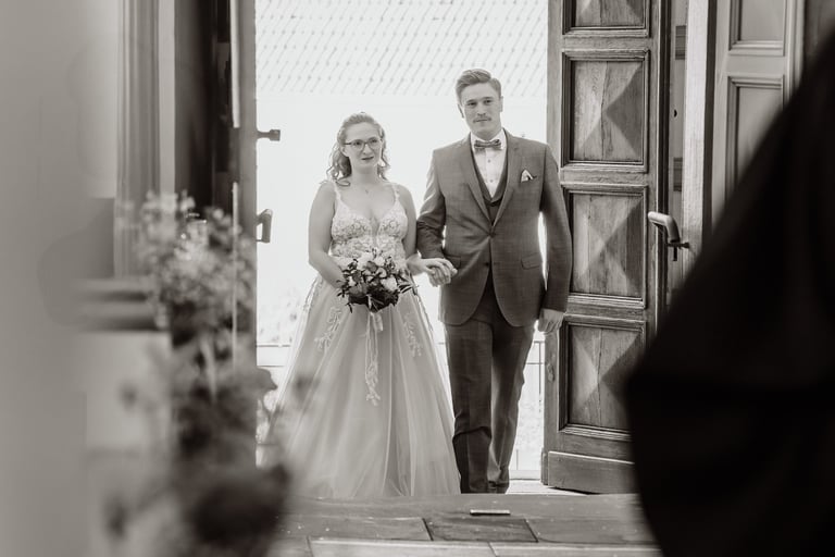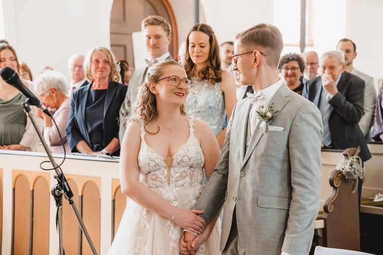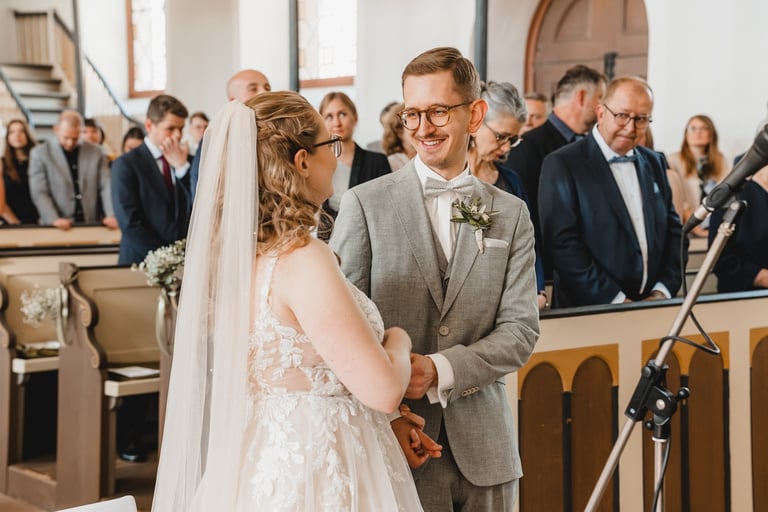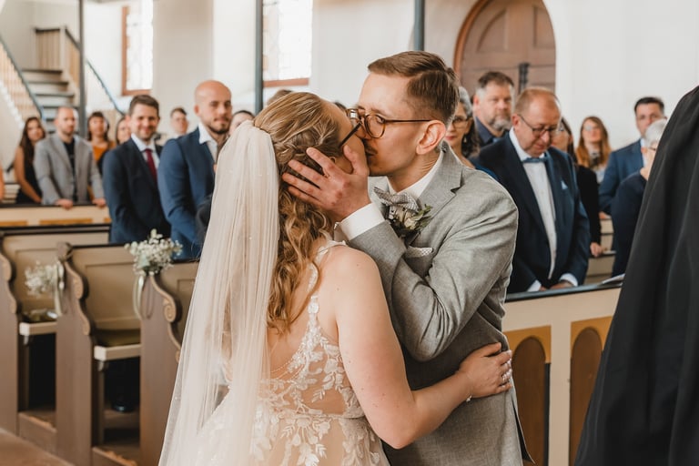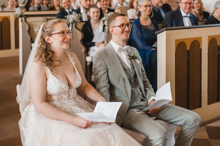An einem herrlichen Frühsommertag gaben sich Larissa & Tobias während ihrer kirchlichen Trauung in Bad Nauheim das Ja-Wort. Das Paarshooting und den First Look durften wir zuvor bereits in der wunderschönen Trinkkuranlage und dem angrenzenden Rosengarten festhalten. So waren die für das Brautpaar so wichtigen Aufnahmen bereits im Kasten, und Larissa & Tobias konnten während der Trauung und beim anschließenden Feiern ihre Emotionen ganz frei genießen.