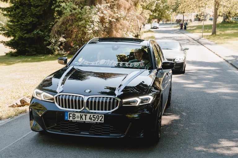 Die Trauung war unglaublich schön und wurde durch die gefühlvollen Lieder einer Sängerin zu einem besonders emotionalen Moment. Im Anschluss führte ein Autokorso das Brautpaar und seine Gäste zur Feierlocation, dem Kurhaushotel in Bad Salzhausen.