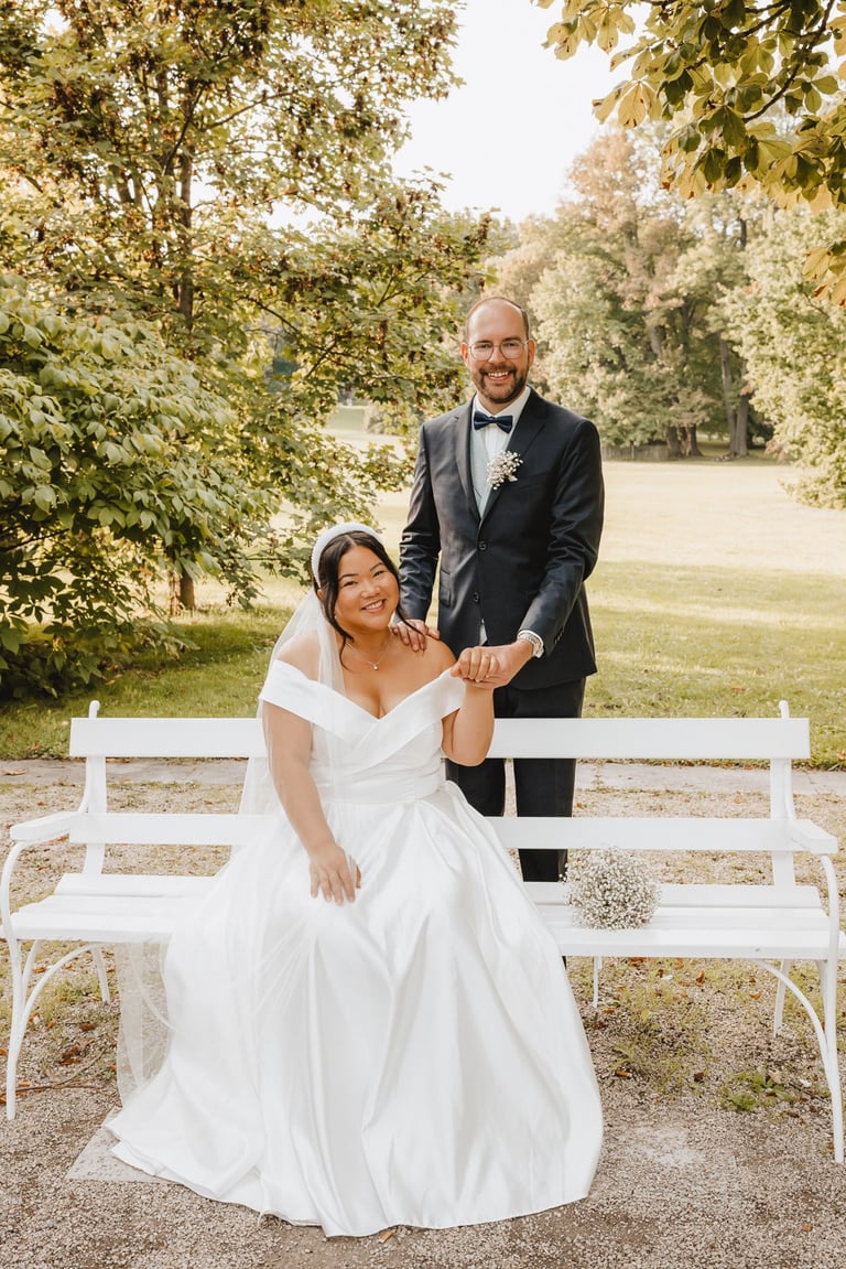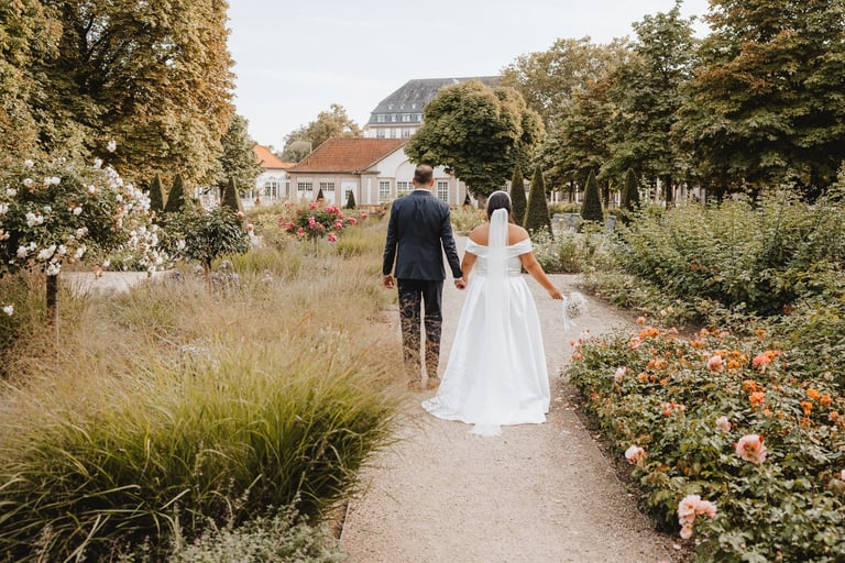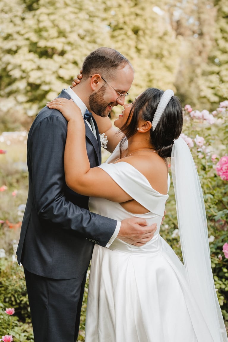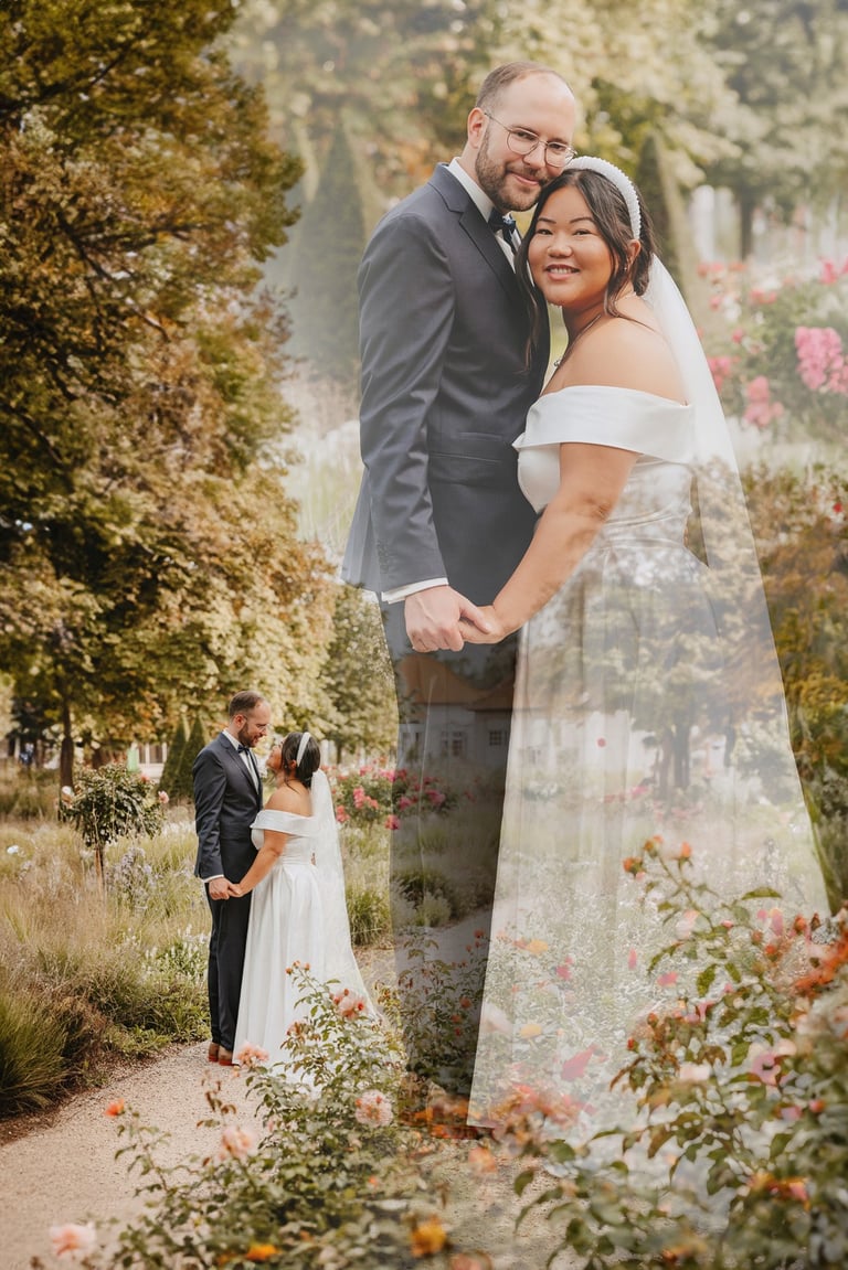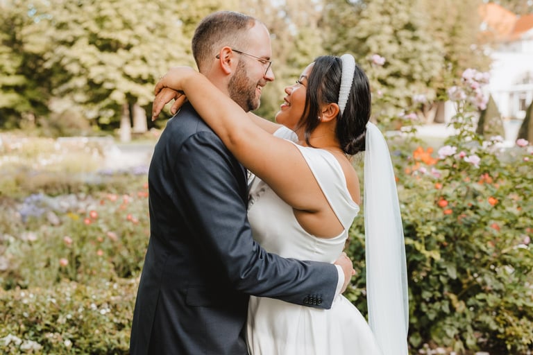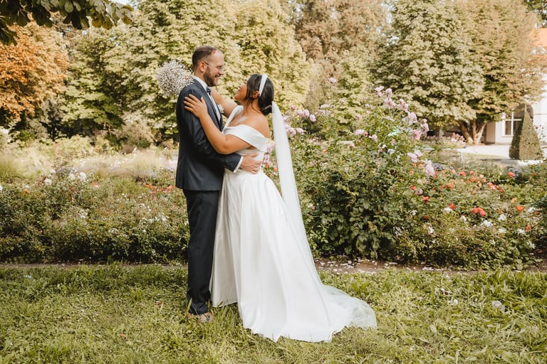 Für das Brautpaarshooting hatten Jacqueline und David einen ganz besonderen Wunsch: Sie entschieden sich, das Fotoshooting an einem separaten Tag durchzuführen. Diese Entscheidung verschaffte ihnen am Hochzeitstag selbst viel mehr Zeit für ihre Gäste und gab ihnen die Möglichkeit, jeden besonderen Moment in vollen Zügen zu genießen, ohne sich Gedanken um das Fotoshooting machen zu müssen. Der Vorteil: Mehr Flexibilität bei der Auswahl des Ortes, der Tageszeit und eine entspanntere Atmosphäre während des Shootings – ein Plus für jedes Brautpaar!