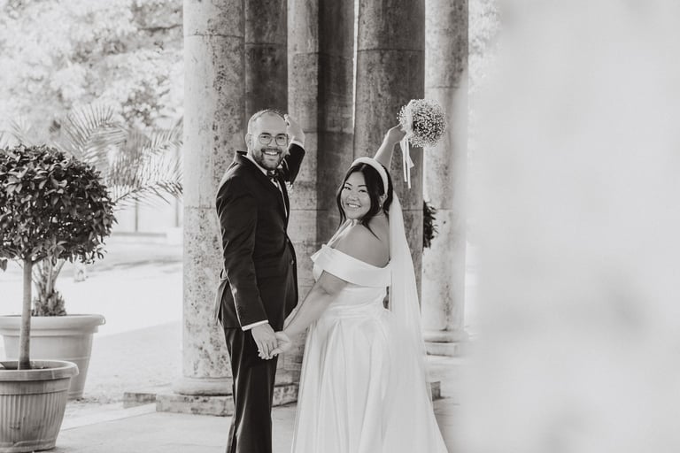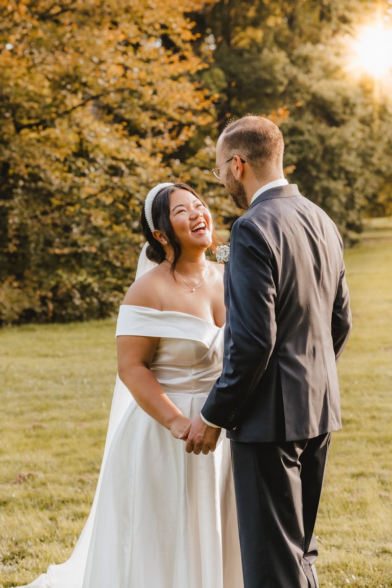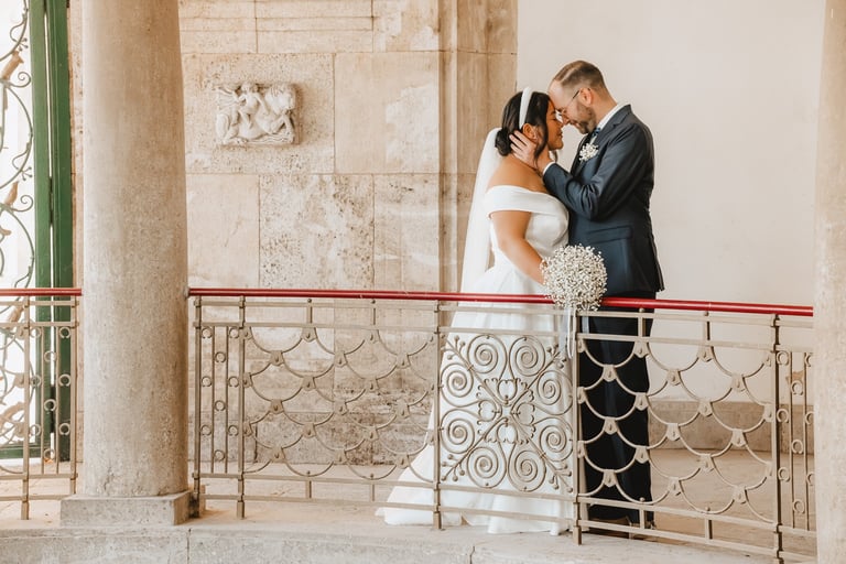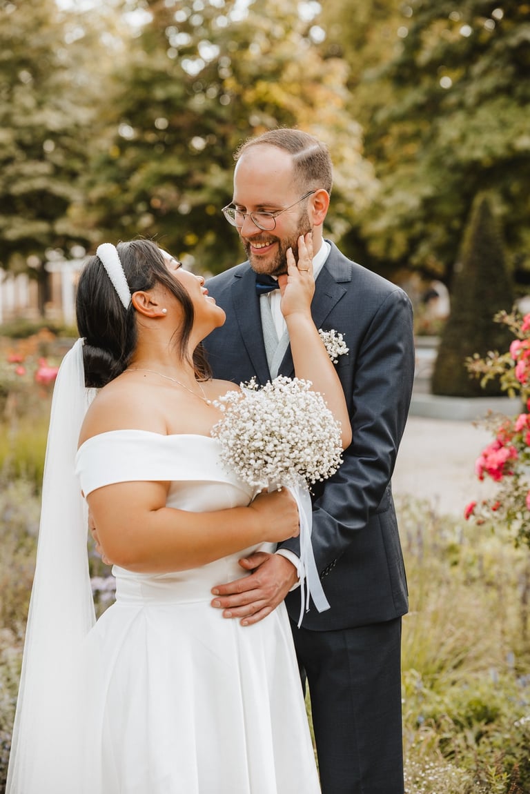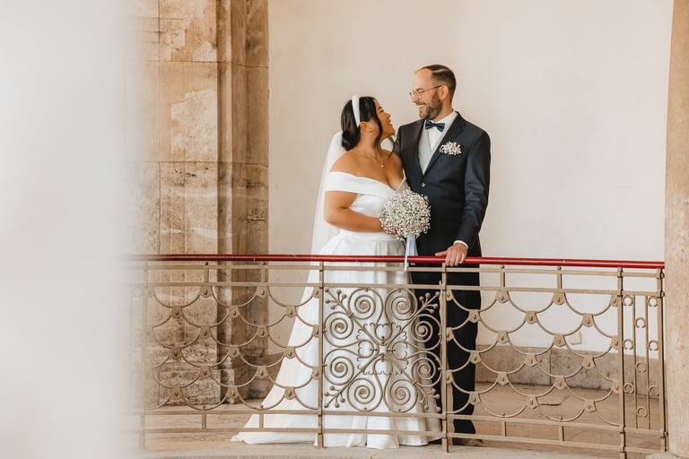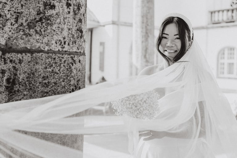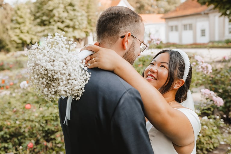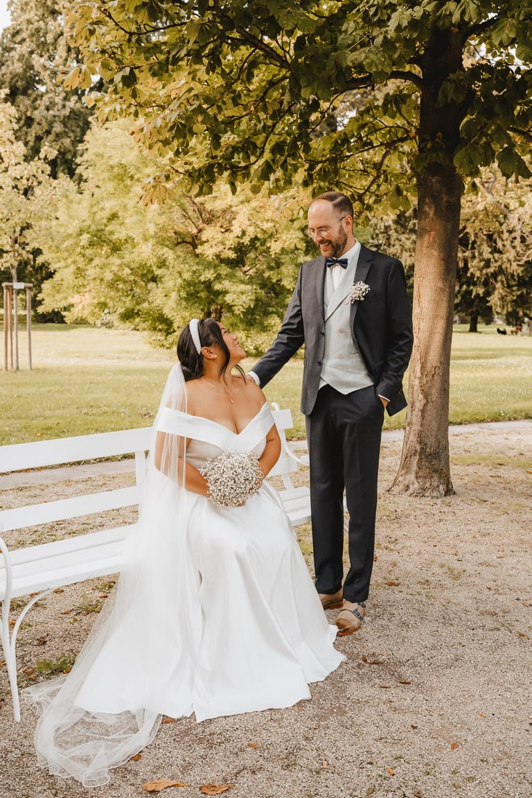 Für das Brautpaarshooting hatten Jacqueline und David einen ganz besonderen Wunsch: Sie entschieden sich, das Fotoshooting an einem separaten Tag durchzuführen. Diese Entscheidung verschaffte ihnen am Hochzeitstag selbst viel mehr Zeit für ihre Gäste und gab ihnen die Möglichkeit, jeden besonderen Moment in vollen Zügen zu genießen, ohne sich Gedanken um das Fotoshooting machen zu müssen. Der Vorteil: Mehr Flexibilität bei der Auswahl des Ortes, der Tageszeit und eine entspanntere Atmosphäre während des Shootings – ein Plus für jedes Brautpaar!