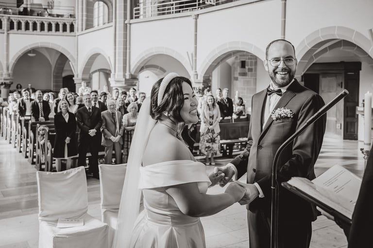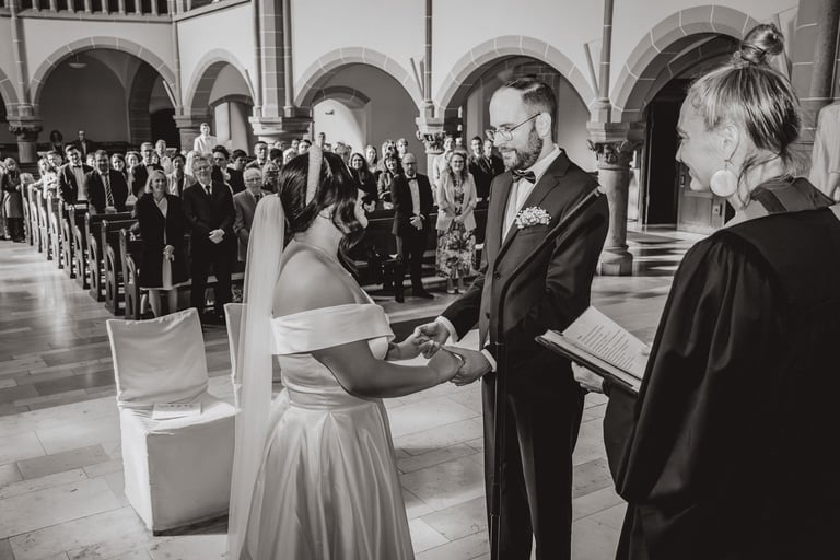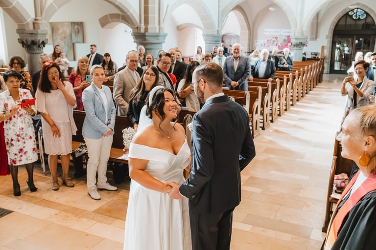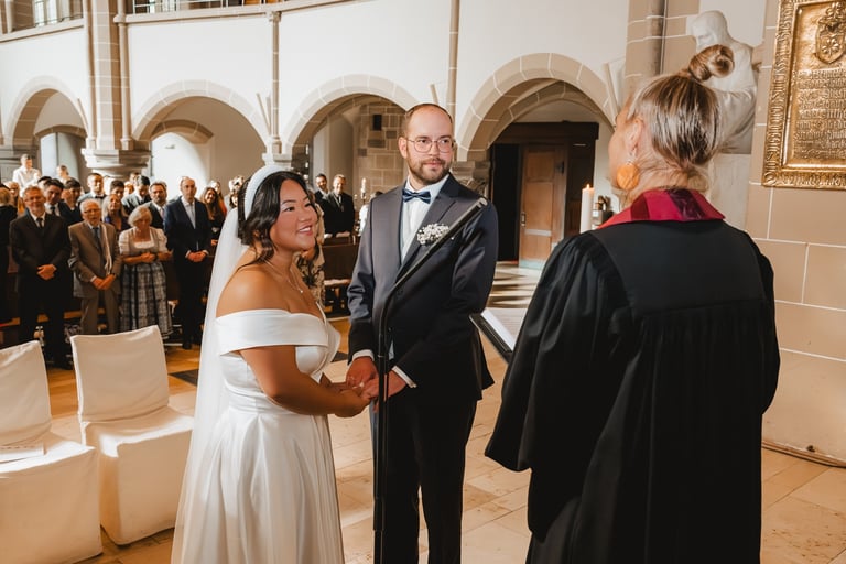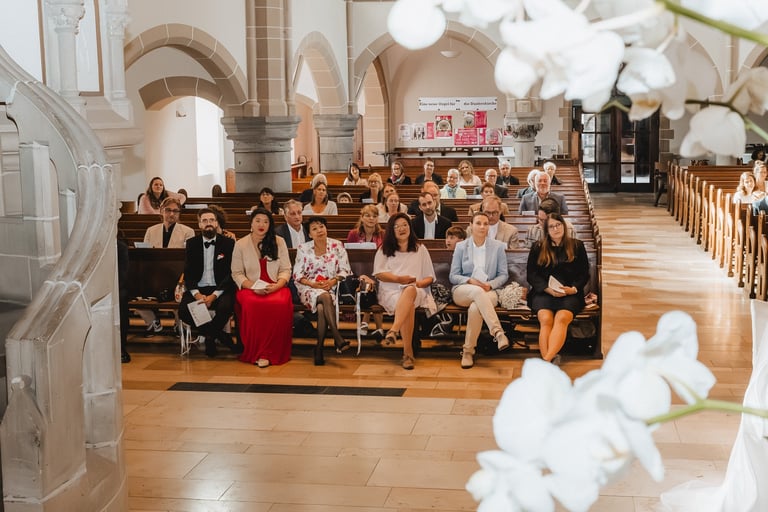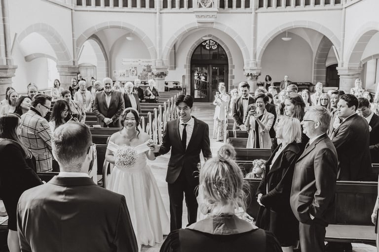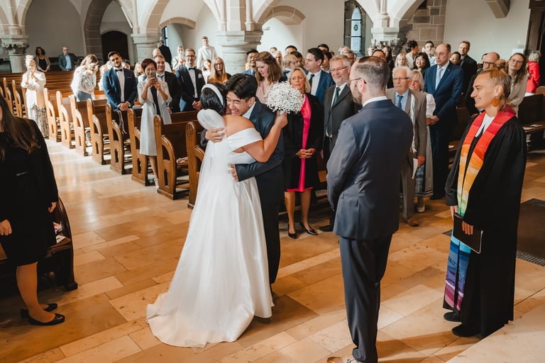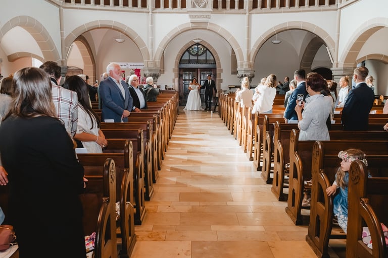 An einem wunderschönen Oktobertag durften wir die kirchliche Trauung von Jacqueline und David in Bad Nauheim begleiten. Dieser besondere Tag begann mit einer emotionalen Zeremonie in der Dankeskirche im Herzen von Bad Nauheim. Die Atmosphäre war unbeschreiblich und bot die perfekte Kulisse für eine unvergessliche Hochzeit.