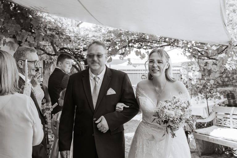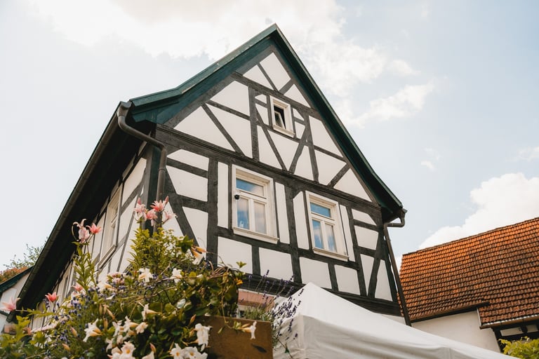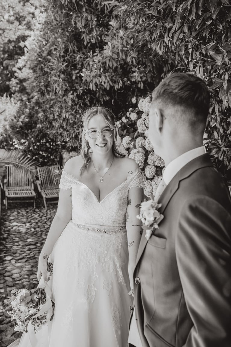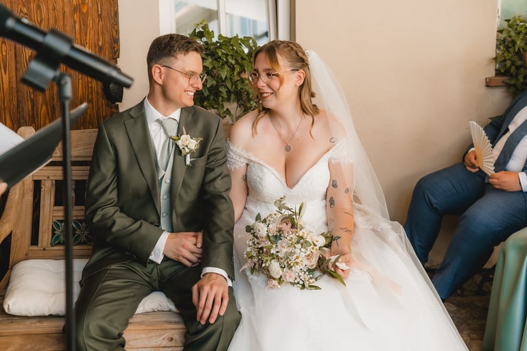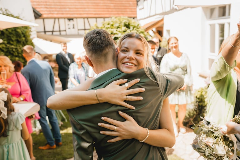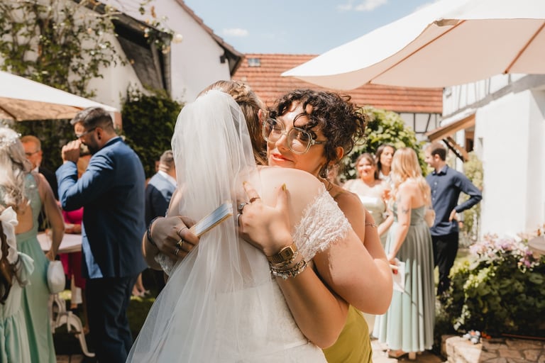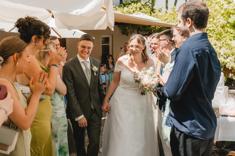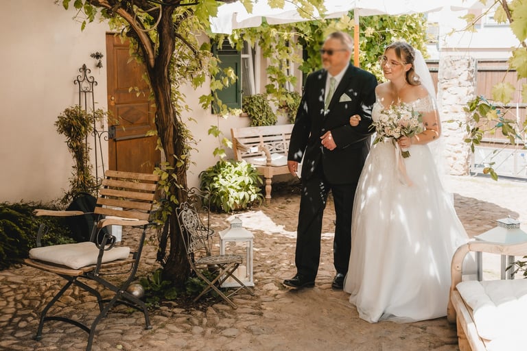 An einem wunderschönen Sommertag gaben sich Lena & Lukas im Geibelhof in Karben das Ja-Wort. Eine wirklich wunderschöne, denkmalgeschützte Hofreite, die mit ihrer einzigartigen Kombination aus historischem Fachwerk und mediterranem Flair sofort verzaubert. Überall spürt man die Liebe zum Detail und das Herzblut, das die Inhaber in diese besondere Location gesteckt haben.