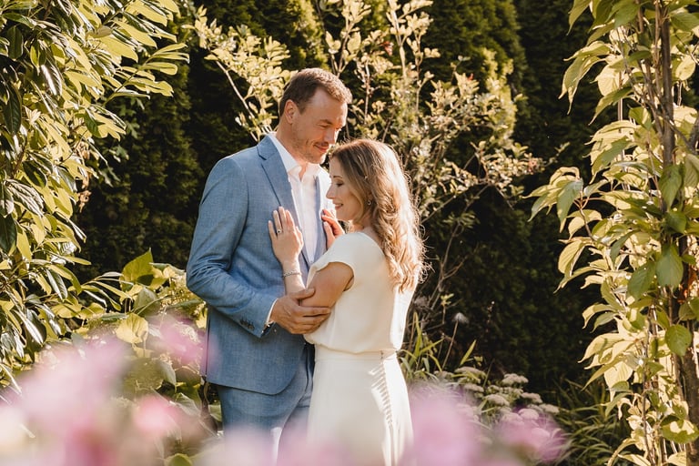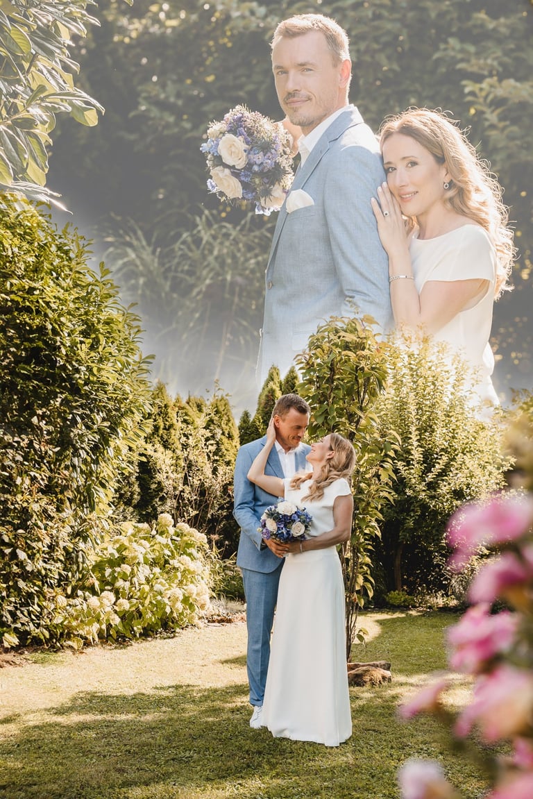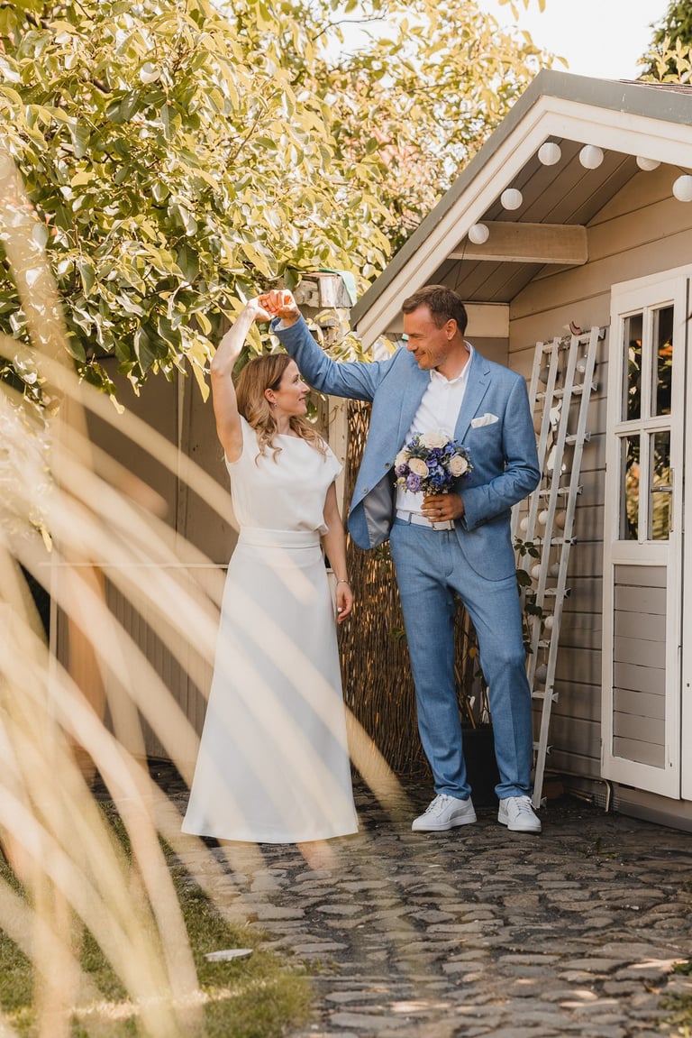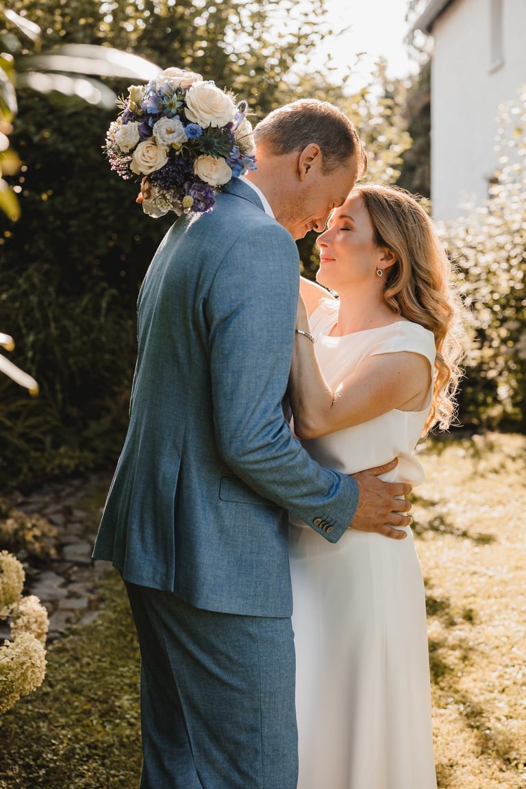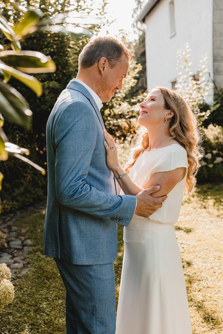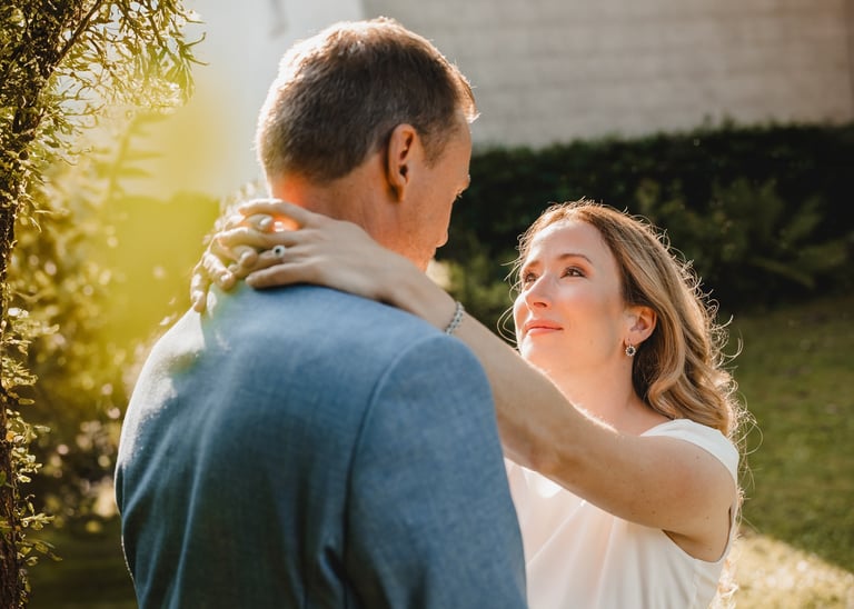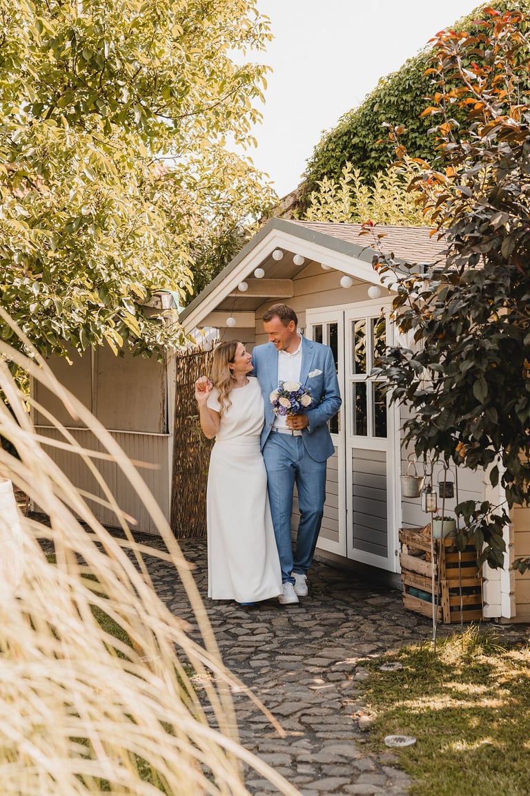 An einem traumhaft schönen Sommermorgen begann der große Tag von Katrin und Thomas auf dem idyllischen Heimburghof in Bönstadt (Assenheim). Bereits beim ersten Blick auf das Anwesen war klar: Dieser Tag sollte genauso einzigartig werden wie das Paar selbst. Das Brautpaarshooting fand im sanften, goldenen Morgenlicht statt, das den gesamten Hof in eine zauberhafte Atmosphäre tauchte. Dieses weiche Licht verlieh den Bildern eine besonders warme, romantische Stimmung, die die Emotionen des Paares perfekt unterstrich. Der liebevoll gepflegte Heimburghof bot uns als Fotografen zahlreiche wunderbare Möglichkeiten, das Brautpaar in Szene zu setzen. Ob unter den riesigen, alten Bäumen, vor den üppig blühenden Büschen und Pflanzen oder an den rustikalen Gebäuden und Toren des Hofes. Nach dem Shooting ging es zu einem der emotionalsten Momente des Tages: der Trauung. Unter dem offenen Himmel, umgeben von der Natur und den warmen Sonnenstrahlen, gaben sich Katrin und Thomas ihr Ja-Wort. Im Anschluss an die Trauung wurde auf dem Heimburghof angestoßen. Bei leckeren Snacks und anregenden Gesprächen ließen sich Katrin und Thomas von ihren Gästen feiern und genossen die ersten Momente als frisch verheiratetes Paar.